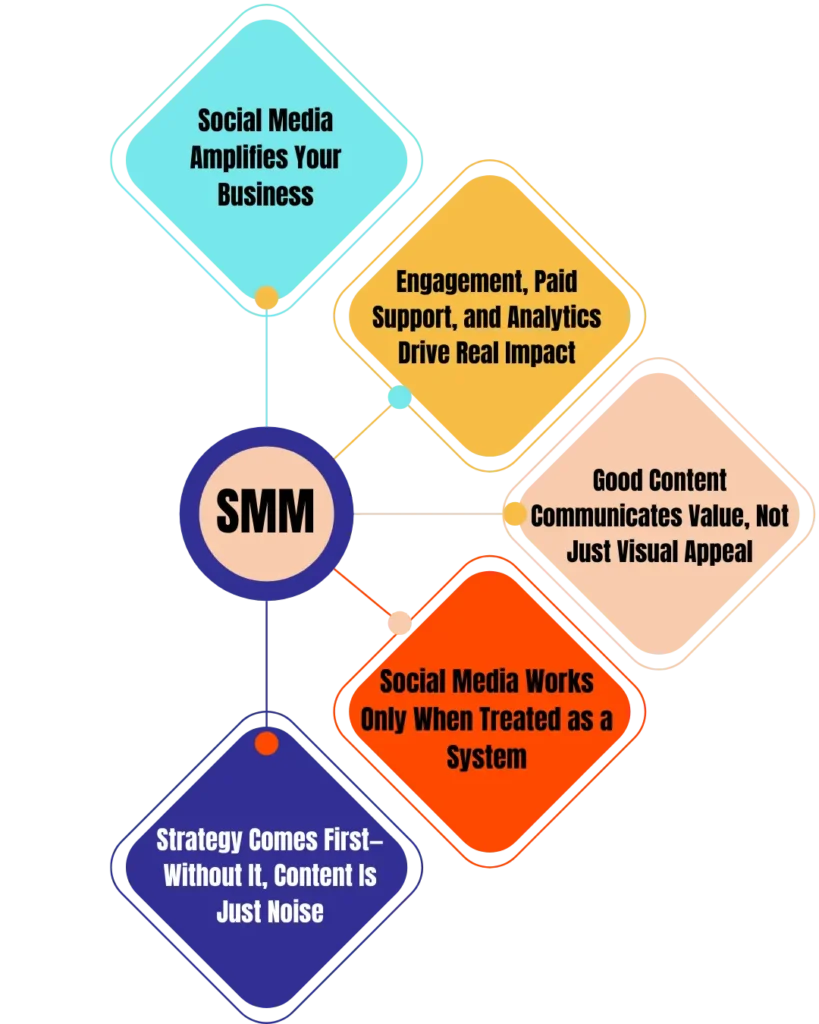 Social media works only when treated as a complete system, not a simple posting routine. Without strategy, content becomes noise instead of a growth tool. Good content goes beyond visuals—it communicates clear value and drives action.